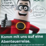 In diesem Kitajahr besuchte die aktiVaria GmbH, eine Kooperationspartnerin der AOK, die Kita Schlupfwinkel bereits zum zweiten Mal. Auch die 4 bis 5jährigen Kindern haben schon an dem kurzweiligen Sportprojekt teilgenommen.