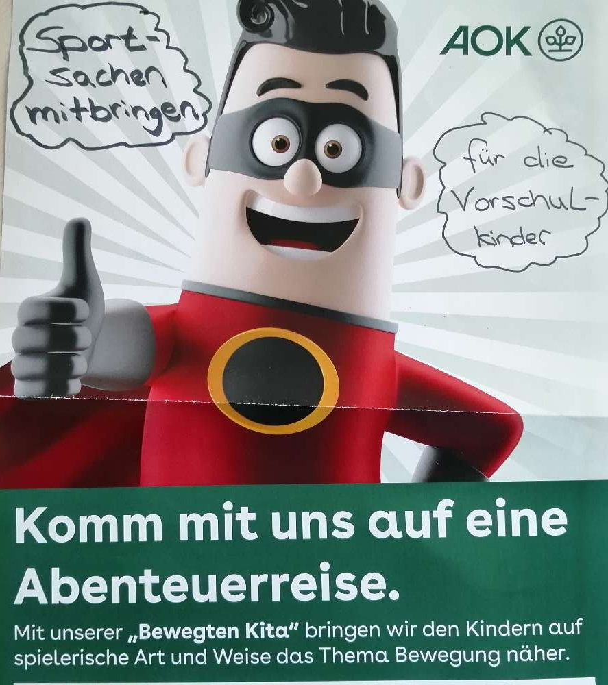 In diesem Kitajahr besuchte die aktiVaria GmbH, eine Kooperationspartnerin der AOK, die Kita Schlupfwinkel bereits zum zweiten Mal. Auch die 4 bis 5jährigen Kindern haben schon an dem kurzweiligen Sportprojekt teilgenommen.