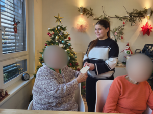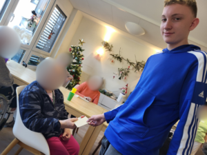 Am 17.12.2025 übergab eine kleine Gruppe von Schülerinnen und Schülern gemeinsam mit der Schulsozialarbeit und der FSJlerin die liebevoll gestalteten Weihnachtskarten persönlich im Pflegeheim. Die Freude über diese besondere Aufmerksamkeit war groß: Die Bewohner zeigten sich sichtlich gerührt und bedankten sich herzlich.